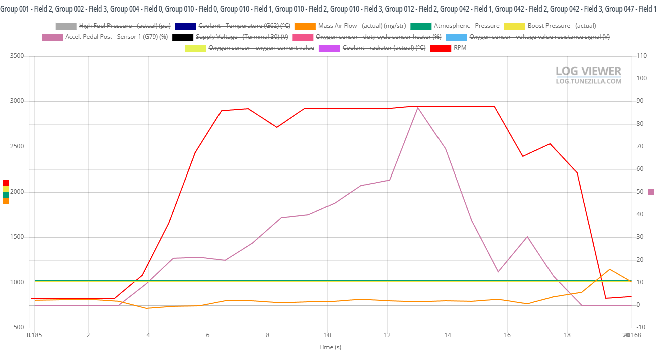 Bruh, quit doing random shit.Let's give this another try with hopefully the correct log. Tried cam position and it didn't seem to read any i selected, allot of the selections seemed to not show anything. These were one that were reading, engine speed, high pressure fuel rail, coolant maf, accelerator, o2, map didn't move. Didn't look at the last upload, shit happens.